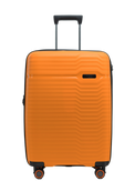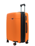 Let kuffert med dobbelt-lags lynlås til hovedrummet, hvilket gør kufferten endnu mere sikker og holdbar i forhold til traditionelle lynlåskufferter. Integreret TSA-godkendt kodelås. Solide og lydløse dobbelt hjul giver uovertruffen manøvredygtighed. Teleskophåndtag i ægte aluminium med tre højdenivauer. Bærehåndtag på kufferten. Kufferten er lavet af det nyeste super resistente Pure Polypropylene. Kufferten findes i 3 farver, Navy, Orange og Black i et moderne og stilfuldt look.