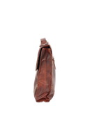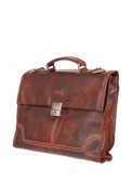 Lækker lille computertaske i cognac farve, blødt læder med plads til 14" laptop pc. Computertasken har et overslag med frontlås. Indvendigt er foret ternet og farverigt i blødt og lækkert materiale.