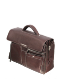 Pc-taske i blødt voksbehandlet kalveskind med lyse stikninger, på front 3 små lommer med plads til nøgler/USB-stik/visitkort. Frontlomme med lynlås og plads til mappe, midtersektionen består af rum med kontorsektion og plads til mindre mappe, rum med speciel pc-foring. På bagsiden rum med lynlås og plads til A4-papir/brochurer samt strop til fastgørelse af trolleyhåndtag. Kraftigt bærehåndtag og justerbar skulderrem.