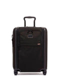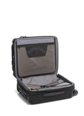 Denne kabine kuffert er perfekt til alt fra en forlænget weekend til forretningsrejsen. Kabinen er udstyret med USB-indgang lige ved navneskiltet i læder, så du let kan oplade elektronikken på rejsen. Kufferten har 4 gode og stærke dobbelthjul, der triller med dig mod nye destinationer. Kufferten er fra TUMI’s Alpha 3 kollektion og er produceret i slidstærkt ballistisk nylon. Kabine kufferten har 2 frontlommer, en mindre flad lomme i bunden og en stor dyb lomme i toppen. Kufferten har indvendigt beslag til 2 TUMI bøjler som hver kan rumme et jakkesæt. Brede spænder i bunden holder tøjet på plads. Kufferten er som udgangspunkt godkendt som kabine kuffert hos de fleste rutefly f.eks. SAS, Norwegian og Lufthansa. Kufferten har mulighed for at blive ekspanderet fra 23 cm. til 28 cm. i dybden.