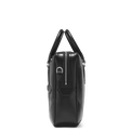 Inspireret af skrivekulturen er Meisterstück-dokumentmappen en elegant ledsager på forretningsrejser. Den er fremstillet i en ny, sort læder med dyb glans, hvor alle detaljer taler fyldepennens sprog: syninger, lynlåstskydere og håndtag leder tankerne hen på pennespidsen – selve essensen af Montblanc. En større version af logoet lyser tasken op. Læderhåndtagene, den aftagelige skulderrem i læder og satellitsystemet giver flere bæremuligheder, mens indvendige lommer i konstrast blå farve sikrer funktionalitet og overblik.