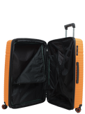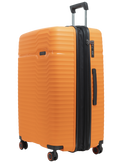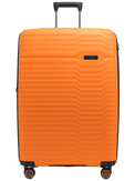 Lightweight suitcase with double-layer zipper for the main compartment, making the suitcase even more secure and durable compared to traditional zippered suitcases. Integrated TSA-approved combination lock. Solid and silent double wheels provide unmatched maneuverability. Telescopic handle in real aluminum with three height levels. Carrying handle on the suitcase. The suitcase is made of the latest super resistant Pure Polypropylene. The suitcase is available in several colors, Navy, Orange, Black and Metallic Blue in a modern and stylish look.