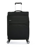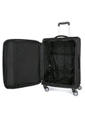 Lightweight medium suitcase in black with 4 silent double wheels. The suitcase can be expanded from 26 cm to 30 cm in depth. The telescopic poles are in aluminum to give lightness to the case. The cabin suitcase has double-layer zippers, which makes the zipper far stronger than traditional zippers. The suitcase has a built-in TSA code lock at the top. Inside, the suitcase is lined with fabric, as well as 2 supporting straps at the bottom, which keep the clothes in place. On the outside, there are 2 easily accessible front pockets with zips. All parts such as wheels, locks, handles, etc. are mounted with screws so that everything can be replaced on the suitcase if the airport staff mishandles the suitcase. A perfect suitcase for you who are looking for a new suitcase with good wheels and a light material at the best price. The suitcase is suitable for check-in.