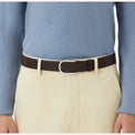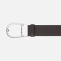 Classic Montblanc leather belt, ebony on one side and black on the other – this reversible 35mm belt offers twice the styling options and is crafted from luxurious grained leather. The palladium-plated horseshoe buckle adds a timeless touch to this versatile belt, which is finished off with the Montblanc emblem.