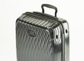 Latitute is TUMI's lightweight suitcase. This luxury suitcase is made of TUMI's strongest and lightest material. The suitcases can withstand far more than the traditional hard suitcases and have an ultra low weight compared to other suitcases you see today. The material is laid in several layers, which are woven with the special SRPP Ballistic material, which means that the material itself can bow and bend according to the surroundings. The wheels are specially designed to provide a good and delicious experience. This cabin size in streamlined design is perfect for a few days.
