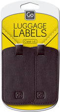 Suitcase name tags with name and address fields. This (2 set) name tag is in black faux leather, with a belt loop. Acts as name tags and can be attached to suitcases and bags as identification, created for travel by GoTravel.