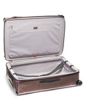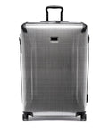 The TUMI Tegra Lite Extended Trip Expandable 4 Wheeled Packing Case is a quality suitcase designed to meet the needs of travelers who require ample storage space for longer trips. This suitcase is constructed with TUMI's patented Tegra-Lite material "Tegris", which is an ultra-durable thermoplastic composite designed to withstand harsh travel conditions. The suitcase is spacious inside with a divided packing compartment which includes a compression strap. It is TUMI+ compatible, so you have the opportunity to personalize your packing experience. The interior is made from recycled materials and includes a zippered mesh pocket. The TUMI Tegra Lite Extended Trip Expandable 4 Wheeled Packing Case also has four double spinner wheels, which provide a smooth and comfortable roll. In addition, the suitcase has a telescopic handle that locks in three different positions, making it comfortable for travelers of different heights to use. The suitcase can be expanded up to 5 centimeters for extra packing space via the external zip. The travel case also has a built-in TSA-approved combination lock for added security. There is an additional integrated suitcase label on the side. All in all, the TUMI Tegra Lite Extended Trip Expandable 4 Wheeled Packing Case is a well-designed and durable luggage choice for travelers who need ample storage space for longer trips. It combines style, functionality and durability to make your travel experience enjoyable for many years to come. The suitcase is produced in Thailand.