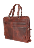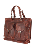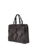 Lædermappe med rustikt og afslappet udseende. 2 frontlommer samt et stort lynlåsrum med indvendig opdeling. Mappen kan trækkes over teleskophåndtaget på en kuffert ved hjælp af add-on-bag stroppen på bagsiden.