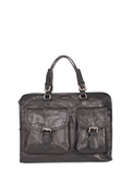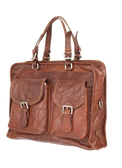 Lædermappe med rustikt og afslappet udseende. 2 frontlommer samt et stort lynlåsrum med indvendig opdeling. Mappen kan trækkes over teleskophåndtaget på en kuffert ved hjælp af add-on-bag stroppen på bagsiden. Læderet har fået en særlig behandling, som giver læderet et unikt krøllet look.