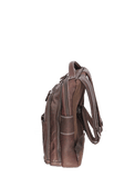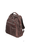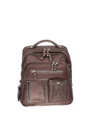 Pc-rygsæk i blødt voksbehandlet kalveskind med lyse stikninger, på front 3 små lommer med plads til nøgler/USB-stik/visitkort. Frontlomme med lynlås og plads til mappe, midtersektionen består af rum med kontorsektion og plads til mindre mappe, rum med speciel pc-foring. På bagsiden rum med lynlås og plads til A4-papir/brochurer samt strop til fastgørelse af trolleyhåndtag. Kraftigt bærehåndtag.